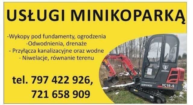 Uslugi minikoparka oraz transport busem do 3.5t- wykopy pod fundamety,drenaze
